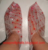 Here's the socks with the solution inside. just have to wear them and leave it on for 2 hours.